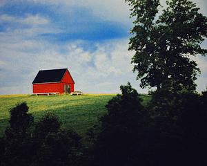 I took this photograph from the passenger window of my car while driving for seven hours to Kentucky. This little red barn was one of the first I saw as we passed into the state, and I couldn't have achieved a better composition if I tried.